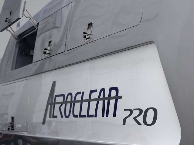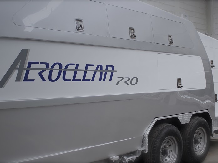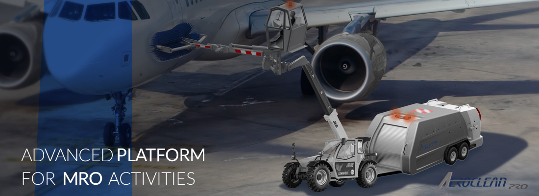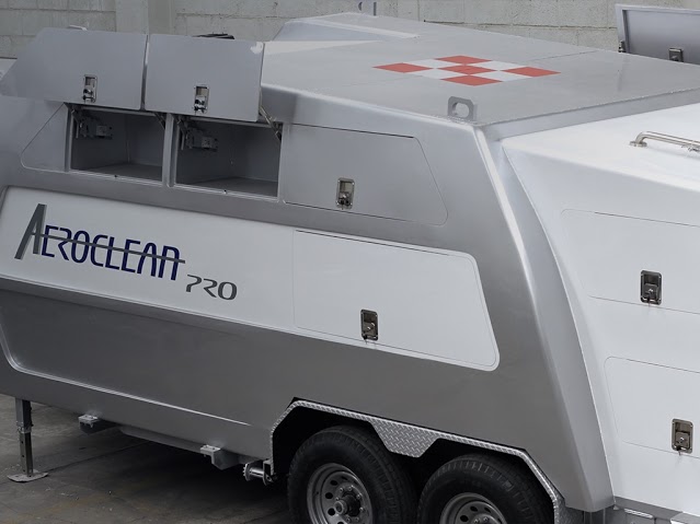 Nacelle with ample capacity to store equipment and tools to perform cleaning routine on the plane.