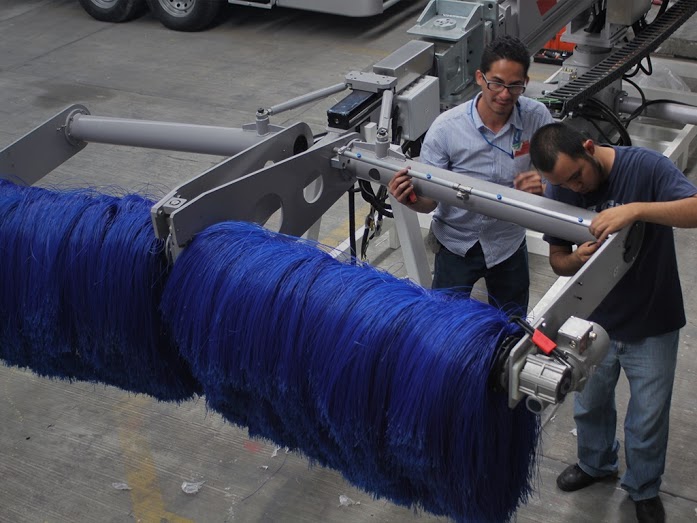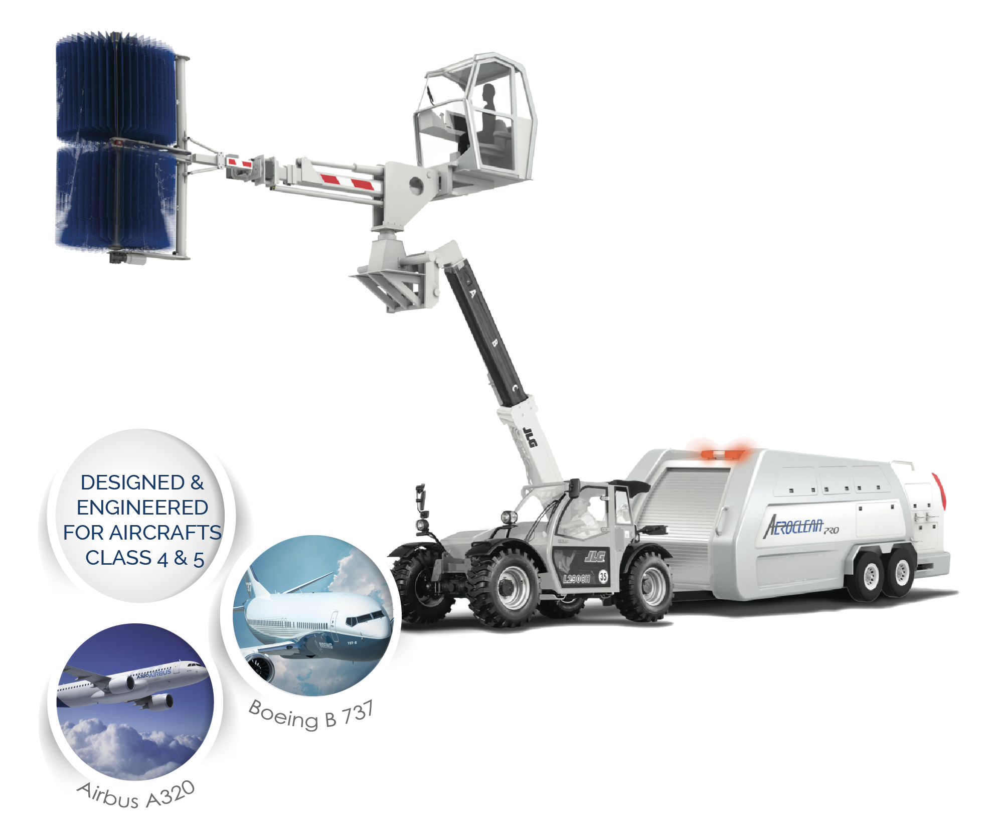 Adaptable brushes to the curved shape of aircrafts and includes high resolution cameras for inspection.